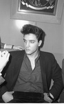 Elvis Presley on layover at the Texas & Pacific train station while en route to Hollywood to make "G.I. Blues" movie.