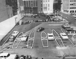 Fort Worth National Bank proposed motor bank demonstration with location of teller windows marked on parking lot, 06/07/1960