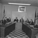 Arlington City Council (left to right) Tom Waldrop, Dixon Purvis, Mayor Tommy Vandergriff, H. A. D. Dunsworth, Jerry Mebus, and M. D. Buchanan [newly elected Dr. Frank Wallace not yet seated].