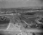 Airview of Fort Worth north/south freeway, looking north with downtown Fort Worth on far left, 09/07/1960