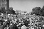 Burnett Park was crawling with Democratic officials as Senators John F. Kennedy and Lyndon B. Johnson brought their campaign to Fort Worth. John Connally is seen in the foreground. Johnson and Kennedy were on a political campaign through Texas with stops in Fort Worth, Arlington, Grand Prairie, and Dallas.