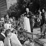 Senator Lyndon B. Johnson speaks to Fort Worth voters at Burnett Park. The Democratic vice presidential candidate, along with running mate Senator John F. Kennedy, also spoke to Arlington and Grand Prairie crowds en route to Dallas.