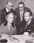 Mrs. Burton Carter visits at head table with former Governor Allan Shivers, to her left; Atwood McDonald, left, standing, and Arch Rowan Jr., at breakfast meeting of Texas Democrats for Richard Nixon and Henry Cabot Lodge Jr.