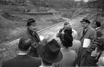 Six Flags Over Texas founder Angus G. Wynne, Jr., points out where the LaSalle River Adventure ride will be built during a 1960 inspection tour, 12/13/1960