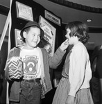 Bowie Theater party for Lena Pope and All Church Homes children; boy feeding popcorn to girl, 03/18/1961