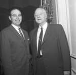 H. L. Hunt, right, with Tommy G. Mercer. Hunt is the host of the radio show "Life Line" and was visiting Fort Worth to speak about Life Line during a luncheon for business and civic leaders; Mercer was host for the session. Both men are standing next to each other. Both are wearing business suits.