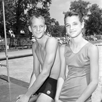 Flashing smiles at the Camp Carter pool are Doug Russell and Dashelle Maines, competing in the YMCA-Camp Carter Swimming tournament entered under Panther Boys Club colors.