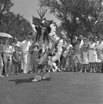 Lewis Anquoe of Fort Worth, full-blooded Kiowa, performs war dance in Indian Village in Texas section of Six Flags Over Texas.