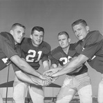 Texas Christian University (T. C. U.) Wogs football players: Randy Howard of Dawson, Larry Bulaich of LaMarque, Bobby Barker of LaMarque, and Jim Fauver of Houston, October 1961