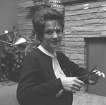 Pat Stead photographed by Star-Telegram reporter Don McDowell for a spoof on Friday the 13th; photo shows mysterious numbers across her forehead.