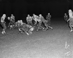 Amon Carter-Riverside High School vs. Polytechnic High School football; Dan Jones #33 scores touchdown; Carter's Butch McGroom #55 at right on ground and David Gibson #77 at left.
