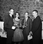 Panther Boys Club, Fort Worth, swimming awards; from left, Doug Russell, Dashelle Maines, Cliff Shive, and Hank Chapman who is swim coach for University of Texas and speaker at the event, 10/20/1961.