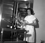 Camellia Cosgrove at a division of the Carter Blood Center, the new Fort Worth Eye Bank, located at 1263 West Rosedale, 12/20/1961
