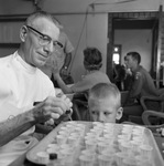 Jim Krum, age 6, watches J.R. Kilman, a pharmacist, put Sabin vaccine on sugar cubes at Central Fire Station, Fort Worth, for a mass immunization against polio, 08/05/1962