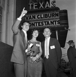 John Paik of Dallas, left, serves as an interpreter for fellow Koreans, Sung Mi Cho and Jung Kyu Kim, right, after their arrival for the Van Cliburn International Piano Competition. The pair, from Seoul, were accompanied by Miss Cho's mother and an instructor.