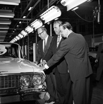 Arlington Mayor Tom Vandergriff, right, who also has a Chevrolet dealership, watches the first Texas-made Chevrolet come off the assembly line at the city's General Motors Arlington plant, along with Henry T. Brian, left, plant manager, and Fred B. Walsh, southwest regional manager for Chevrolet.