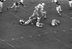 Larry Bulaich drives for touchdown helped by block by Sonny Gibbs (#11) during football game between Texas Christian University (T. C. U.) and Texas A&M, October 20, 1962