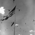 A huge American flag waved proudly as a squadron of Army helicopters swooped low over Independence Day ceremonies of Fort Wolters commemorating its designation as a permanent Army installation. A stirring, patriotic speech by a U.S. Congressman a booming 50-gun salute, and a shiny-helmeted honor guard contingent helped flavor the sunny ceremonies. The post is a helicopter pilot training base.