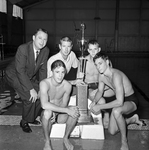 The Panther Boys Club group is heading to Chicago for the National AAU senior aquatic meet. Coaches pictured are Wirt Norris Jr., top left, and Don Easterling. Swimmers include Doug Russell, top right, junior swimmer; Dickie Chowning, bottom left, champion diver; and Pat Lane, senior division swimmer.