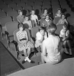 Casa Manana's Merry-Go-Round Theater School for school-age children; students sitting in theater before an instructor, 08/12/1963