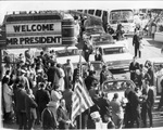 Crowd; Motorcades; Men in suits; Automobiles