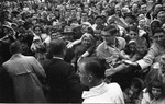 John F. Kennedy surrounded by crowd outside Hotel Texas.