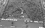 Aerial of crowd waiting to hear John F. Kennedy speak, Fort Worth.