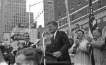 John F. Kennedy speaking to crowd outside Hotel Texas.