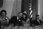 Fort Worth Chamber of Commerce breakfast, Hotel Texas, Jackie Kennedy speaking to Lyndon B. Johnson, JFK to her left.