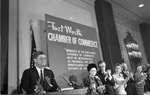 Fort Worth Chamber of Commerce breakfast, Hotel Texas, John F. Kennedy speaking at podium.
