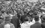 John F. Kennedy surrounded by crowd outside Hotel Texas.