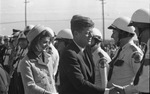 John F. Kennedy and Jackie shaking hands with policemen at Carswell Air Force Base, Fort Worth.