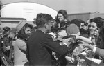 John F. Kennedy and Jackie greeting crowd gathered at Carswell Air Force Base, Fort Worth.
