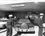 Presidential limousine parked at Emergency Room entrance of Parkland Hospital, Dallas, following President John F. Kennedy assassination.
