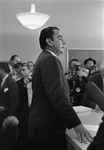 Assistant Presidential Press Secretary Malcolm Kilduff tells reporters in a classroom at the University of Texas Southwestern Medical School of President John F. Kennedy's death at Parkland Hospital, Dallas, Texas.