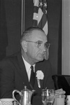 Close-up of Vice President Lyndon B. Johnson during Chamber of Commerce breakfast, Hotel Texas, 11/22/1963