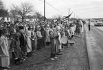 School children wait along River Oaks Boulevard, Fort Worth, for President John F. Kennedy's motorcade on its way to Carswell Air Force Base.