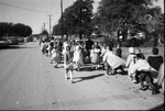 Castleberry school children walking along River Oaks Blvd. to see President John F. Kennedy's motorcade on its way to Carswell Air Force Base, Fort Worth.