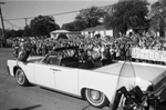 Children waving at President John F. Kennedy's motorcade making its way to Carswell Air Force Base along River Oaks Blvd.