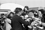 President John F. Kennedy seen with Jackie Kennedy greeting a crowd of people at Carswell Air Force Base in Fort Worth on their way to Dallas Love Field.