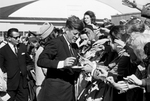 Crowds; Spectators; Autographing; United States Presidents; Kennedy, John F. (John Fitzgerald), 1917-1963; Onassis, Jacqueline Kennedy, 1929-1994