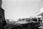 John F. Kennedy's 1956 Cadillac Secret Service Limousine, also referred to this car as the Queen Mary II, which drove directly behind the President's limousine during his assassination. This limo has side running boards, hand rails and platforms for Secret Service agents. The limousine is seen parked at Parkland Hospital in Dallas.