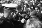 President And Mrs. John F. Kennedy in crowd at Love Field, Dallas; bodyguard Clint Hill near Mrs. Kennedy, 11/22/1963