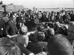 Pres. John F. Kennedy, wife Jackie, and Gov. Connally and wife Nellie enter limousine for Dallas motorcade that will leave Love Field, 11/22/1963