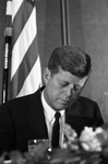 Pres. John F. Kennedy in pensive moment at the Chamber of Commerce breakfast, Hotel Texas, Fort Worth, 11/22/1963