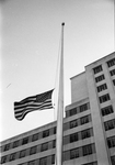 American flag flying at half-staff outside Parkland Hospital, first indication of Pres. John F. Kennedy's death, 11/22/1963