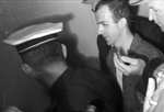 Lee Harvey Oswald in police custody at Dallas Police Department, 11/22/1963.