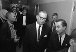 Dallas police station Jack Ruby shooting Lee Harvey Oswald; man in front wearing glasses Justice of the Peace Pierce McBride; man next to wall is Seth Kantor, reporter for Fort Worth Press and Scripps Howard, 11/24/1963 [other men not identified]