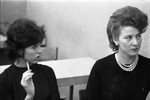 Exotic dancers from Jack Ruby's Carousel Club being questioned at Dallas Police Department; Joy Dale, right, and unidentified woman on left, 11/24/1963