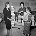 The annual Book Fair sponsored by the Fort Worth Section of the National Council of Jewish Women will open on April 18 in the mall at Seminary South. Books of every kind and for all ages are sorted by Mrs. Burton Tabor, left, Mrs. M. M. Goldman, perched among the volumes, and Mrs. Leo Lederman. The books will be nominal prices and include every kind from fiction to scientific, children's to chef's books.